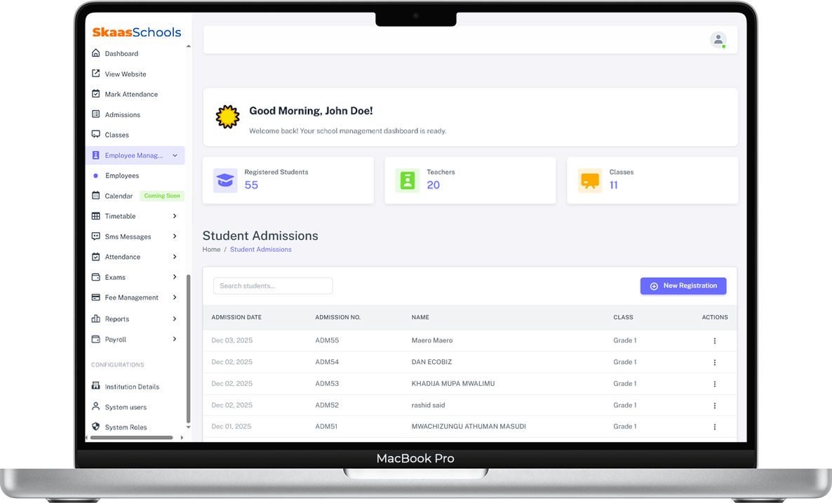 SkaasSchools is an all-in-one school management system designed to simplify academic, administrative, and communication processes. With 22 Core Modules built-in, it empowers your institution to manage everything from student records and exam results to staff payroll and fee tracking. By streamlining administration and leveraging powerful data insights, SkaasSchools allows your staff to focus on educational excellence.